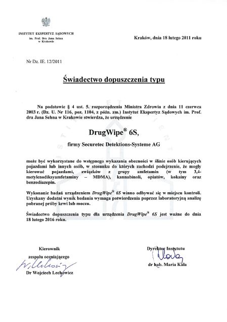 DRUGWIPE 6S to test który najchętniej używają policjanci ,kuratorzy sądowi, zakłady pracy i inne służby mundurowe ,ponieważ ma wszystko w sobie co możliwe na dziś, łatwy w użyciu w warunkach "polowych" intuicyjny, działa z małą ilością śliny!!! Wystarczy dotknąć testem  do śliny następnie uruchomić go  i po 7 minutach otrzymujesz wynik.Dla profesjonalistów jest urządzenie które odczytuje wynik testu i robi wydruk jako dowód z badania.  Ten test dostał w 2011 r. zatwierdzenie typu przez (dopuszczenie do użytkowania przez służby) Instytut Ekspertyz Sądowych  w Krakowie , na podstawowe grupy narkotyków + leki psychotropowe.  Test jest skalibrowany. Test jest produktem medycznym, stawka WAT 8% .