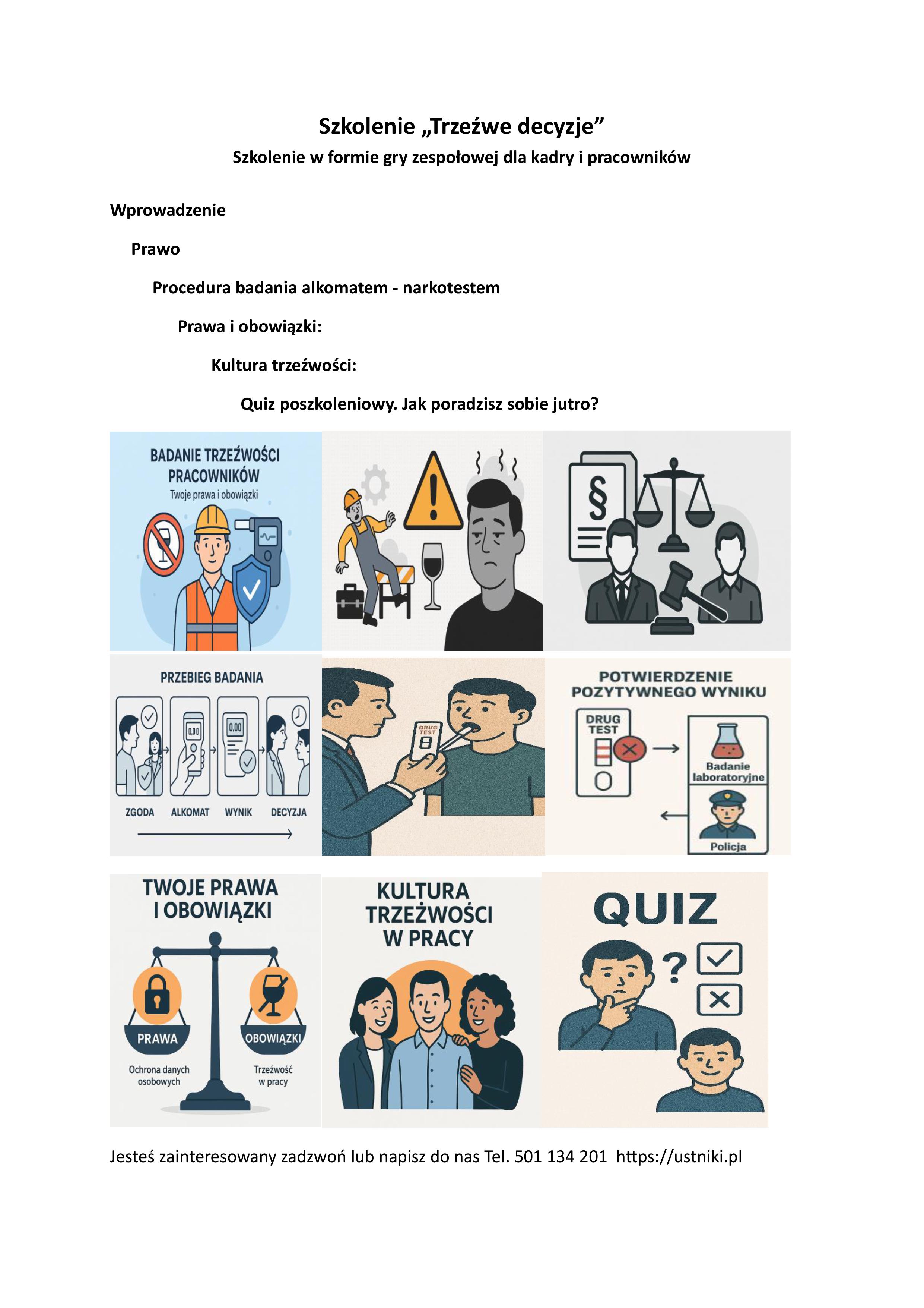 6. Warsztaty z badań pracowników- alkomatem i narkotestem ew. badaniem moczu.